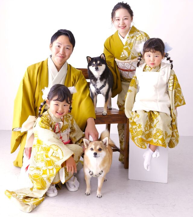 家族の晴れ着ということで柄にもこだわり、『円満・調和・ご縁』などの願いを込めた七宝柄や、 不断長久という意味がある紗綾形、『家の繫栄や長寿を願う』模様を取り入れました。ご家族揃って縁起の良い着物で“ハレの日”を祝いましょう!