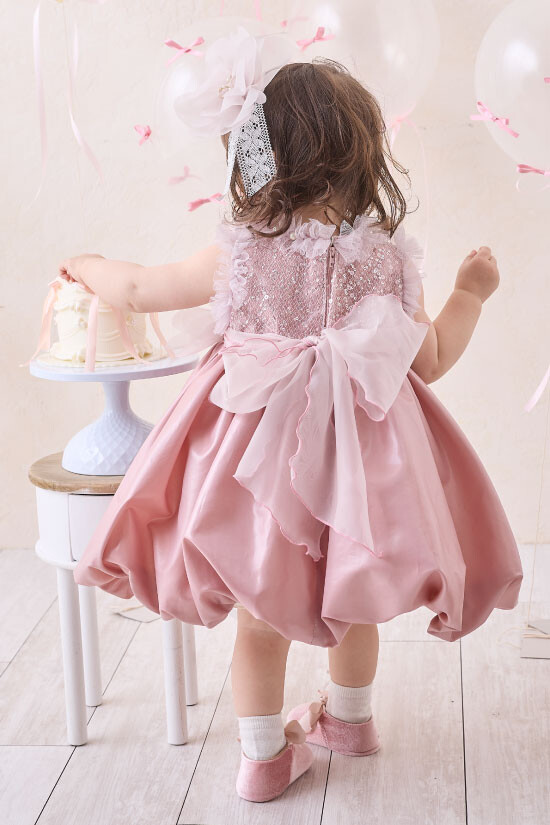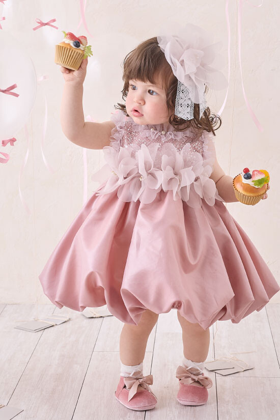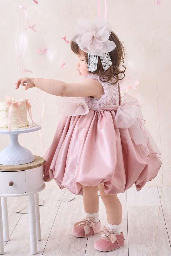 ボリュームあるバルーンスカートがかわいい。初めてのお誕生日や歩き始めた記念にも◎